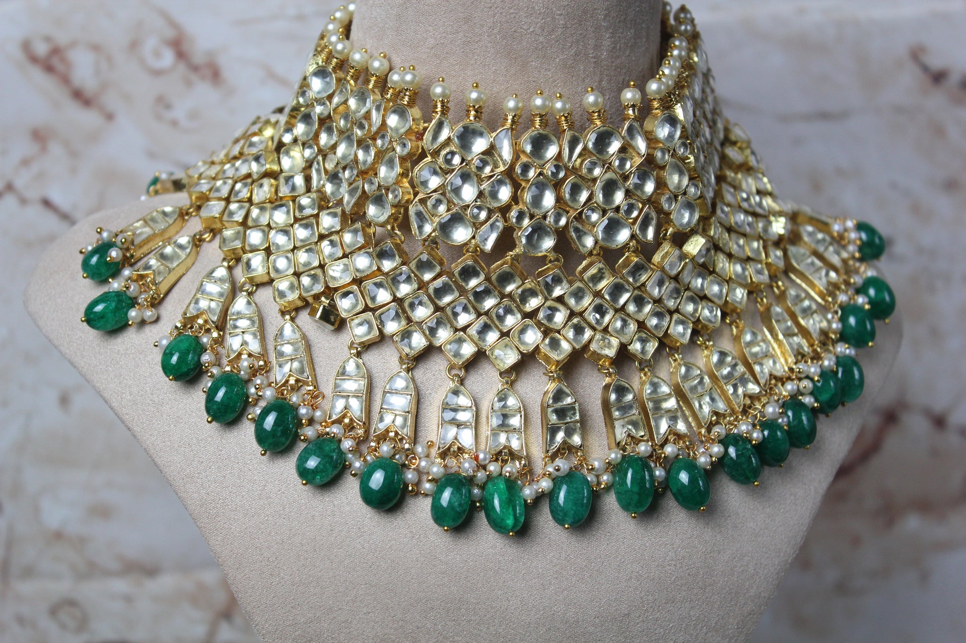 An intricate pachi kundan bridal necklace set which will be the perfect complement to your bridal look.