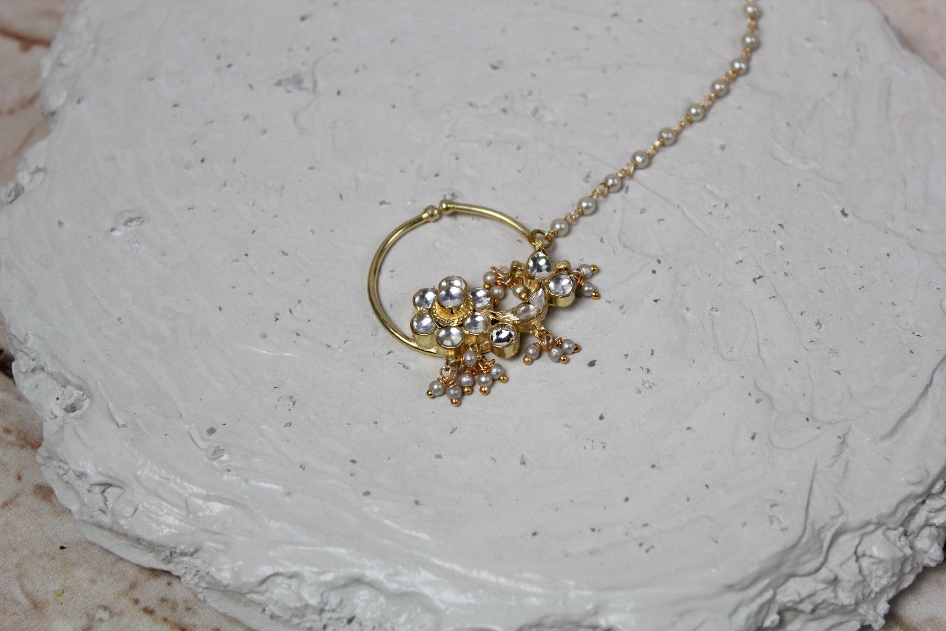 Janaya Non-Pierced Kundan Nose Ring with Chain