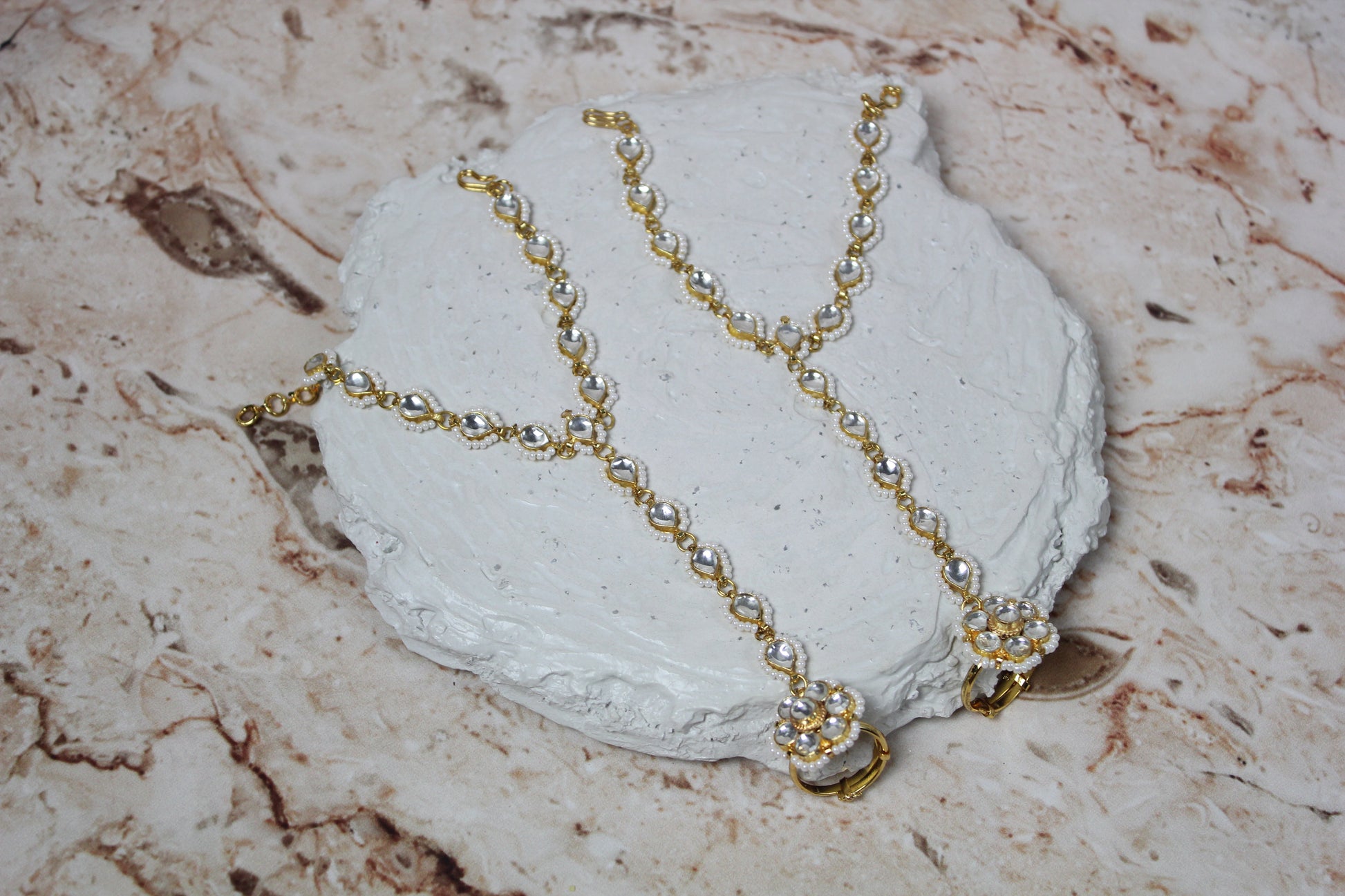 A stunning pair of hand chains to complete your look. The chains are adjustable/one-size.
