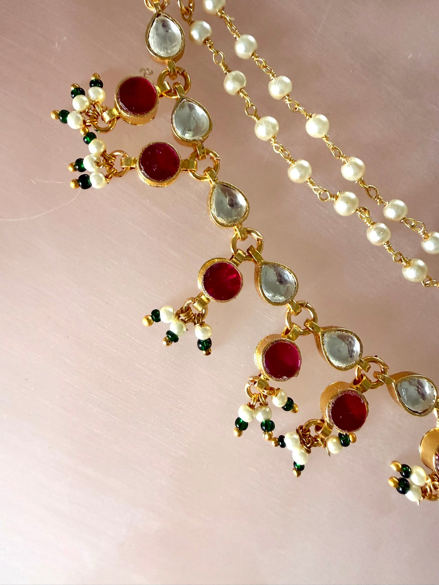 - Double-layered pearl chain design