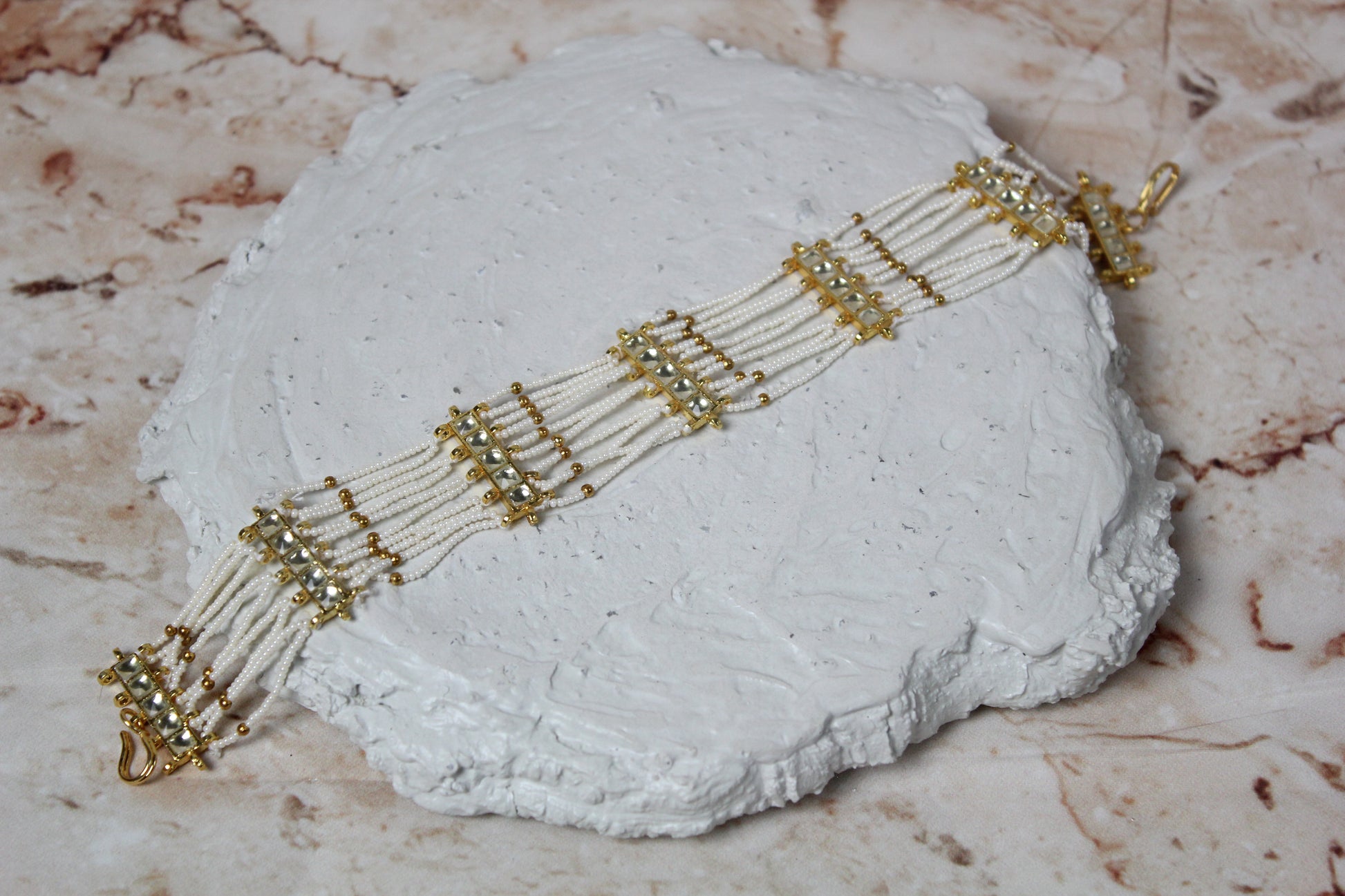 This glamorous sheeshphool is adorned with intricate kundan stones. Sheeshphools are typically worn like “headbands” and add an elegant and modern touch to any ensemble!